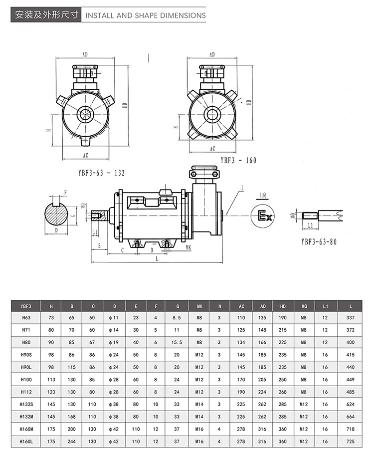 加長型風機用YB3系列隔爆型三相異步電動機