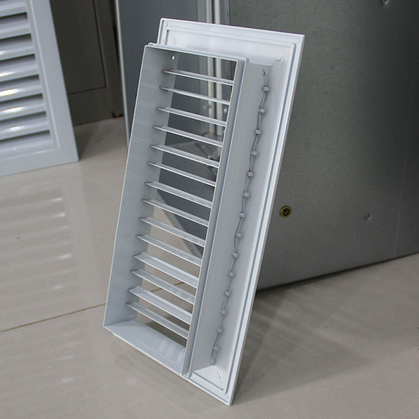 單層可調(diào)百葉風(fēng)口常用于管道中的吸、送風(fēng)用,同時可根據(jù)實(shí)際情況配上人字閘(多葉對開調(diào)節(jié)閥),用以控制風(fēng)量或安裝過濾器,進(jìn)行配套使用。葉片可分為橫放和豎放兩種,可靈活的左右或者上下轉(zhuǎn)動,以控制氣流方向。單層百葉風(fēng)口的風(fēng)口氣流調(diào)節(jié)方向是一維的,不是水平左右就是垂直上下這兩個方向之一,但雙層百葉風(fēng)口的風(fēng)口氣流調(diào)節(jié)方向是二維的,具有水平左右和垂直上下兩個方向。