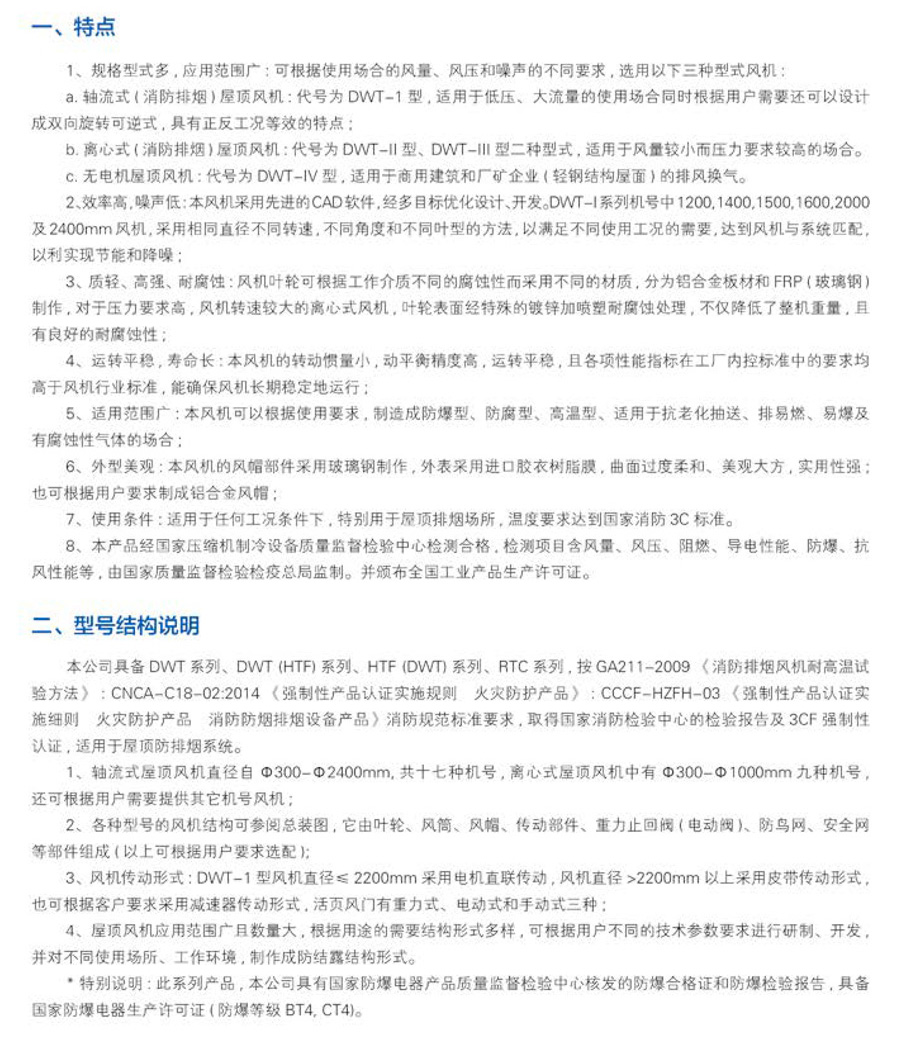 RTC(JRTC)系列全鋁制屋頂風機是引進歐美技術聯合科研院校共同研發的一種環保、節能全鋁質離心式屋頂排風機,該產品外形設計流暢美觀,工藝精湛,符合高檔建筑對于外露設備質感的要求。電機與排放氣流隔離,更適合排除帶有煙塵、油霧、潮濕等污染空氣,延長電機及傳動部件的使用壽命。采用全鋁質后向板形離心式葉輪,平衡等級高,氣流組織順暢,運行平穩;具有重量輕、壓力高、風量適中、噪聲低、耗電省、外形美觀牢固等優點,廣泛用于機械、化工、橡膠、制藥、輕紡等行業的車間高大廠房及高級民用建筑的屋頂排風換氣。 RTC(JRTC)系列全鋁制屋頂風機根據不同的使用環境和輸送介質,制成常規型、防腐型、防爆型、防腐防爆型。可根據使用要求制成全鋁質消防高溫排煙屋頂風機,并配設入口排煙防火閥。 選配附件:按需要可配設重力式止回風閥、防鳥(蟲)網、檢修開關、集中控制箱等附件。